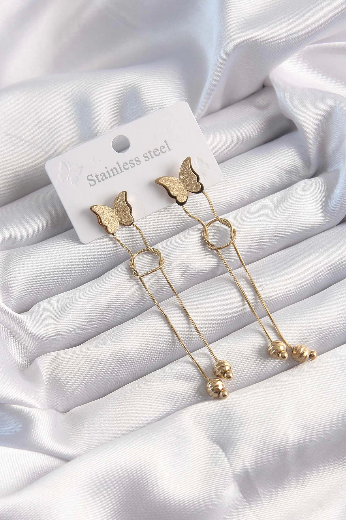 316l Çelik Altın Renk Sallantılı Düğüm Model Kelebek Küpe