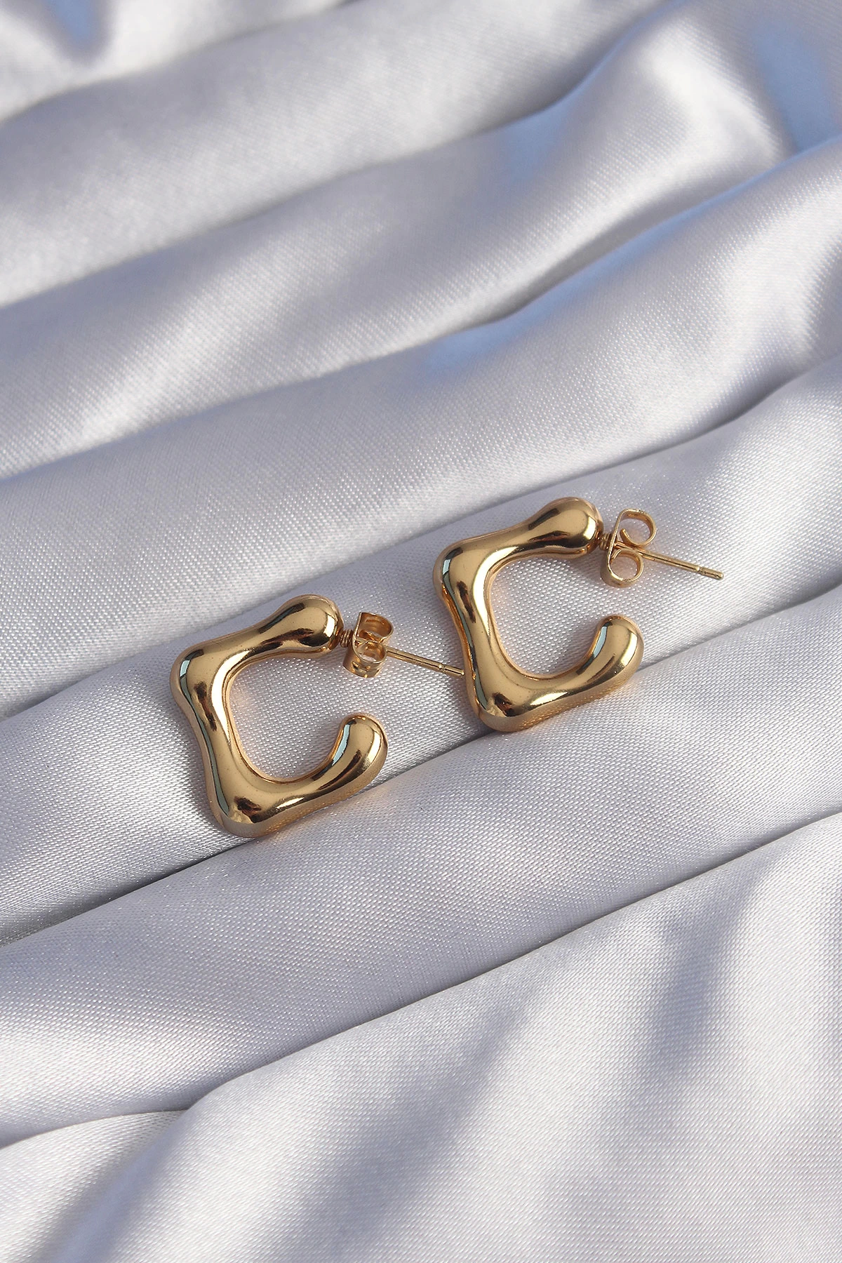 316l Çelik Gold Renk İçi Boş Bubble Kalp Küpe