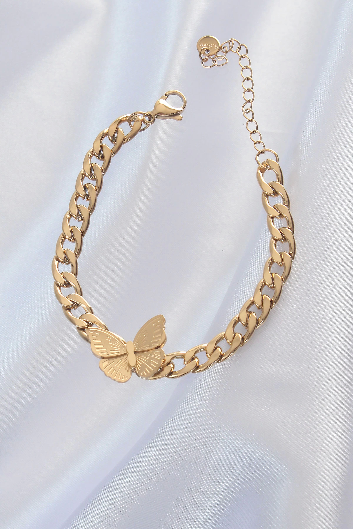 316l Çelik Gold Renk Kelebek Figür İşleme Detay Zincir Model Kadın Bileklik
