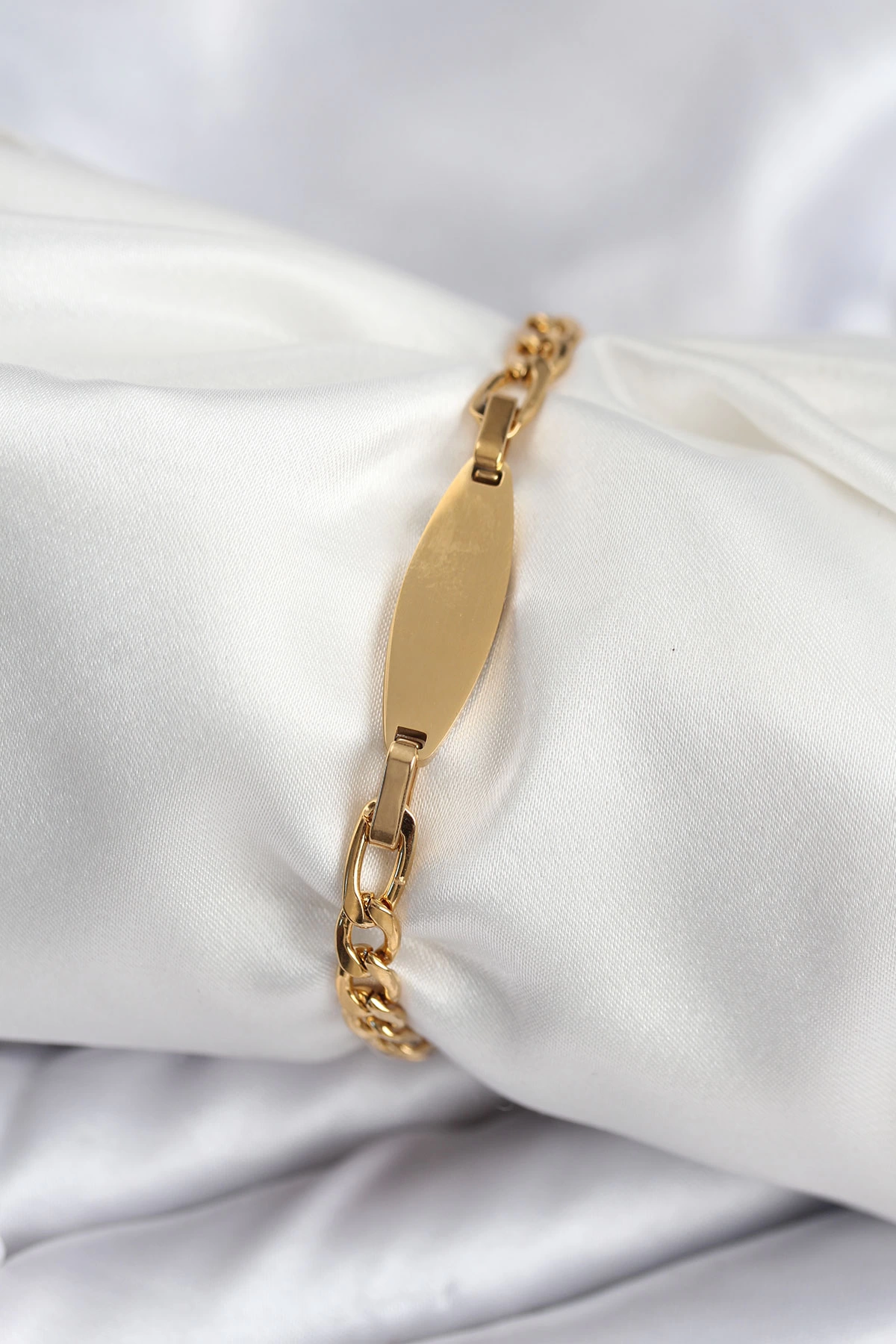 316l Çelik Gold Renk Oval Yazı Yazmaya Uygun Kadın Bileklik