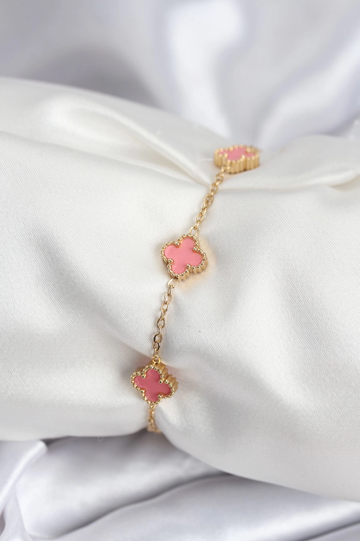 316l Çelik Gold Renk Pembe Baby Boy Yonca Kadın Bileklik