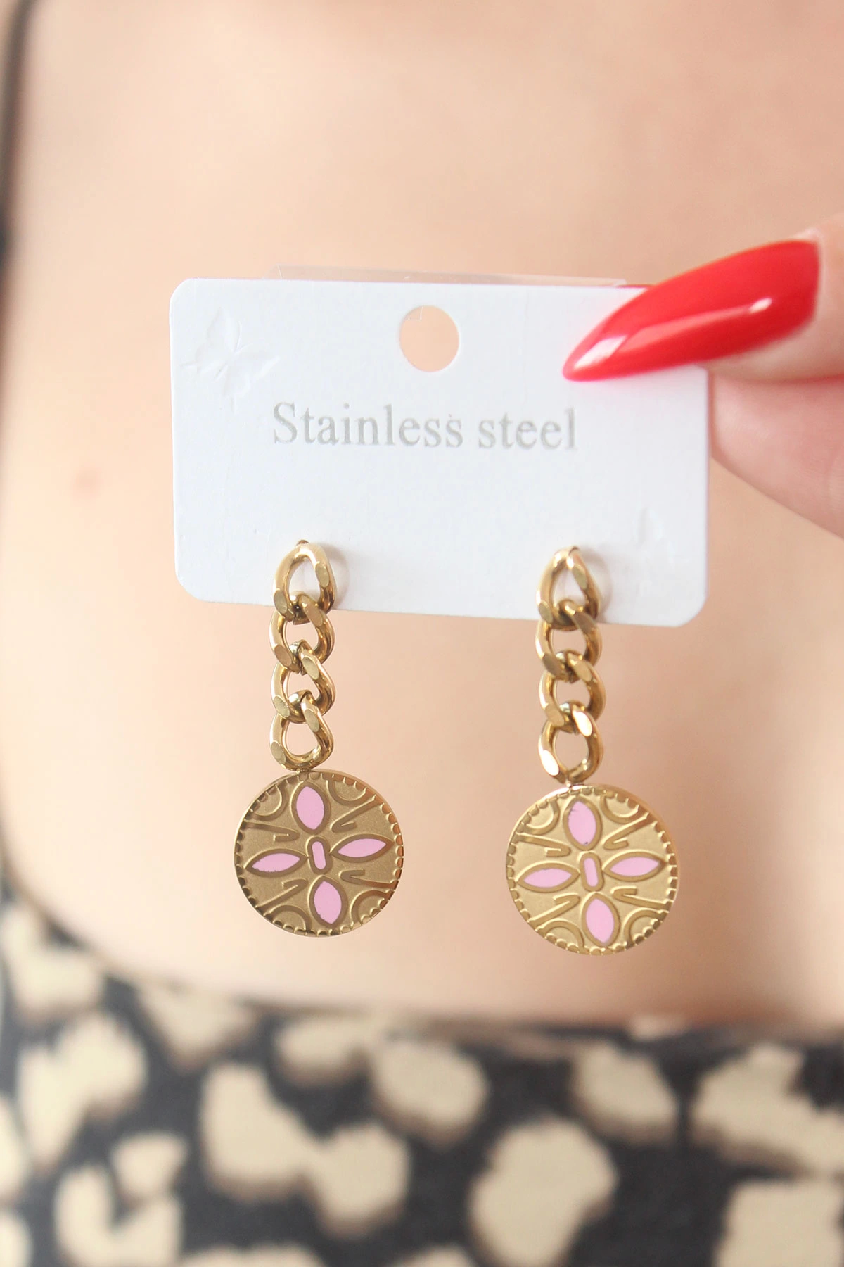 316l Çelik Gold Renk Sallantı Çiçek Model İşleme Detay Kadın Küpe