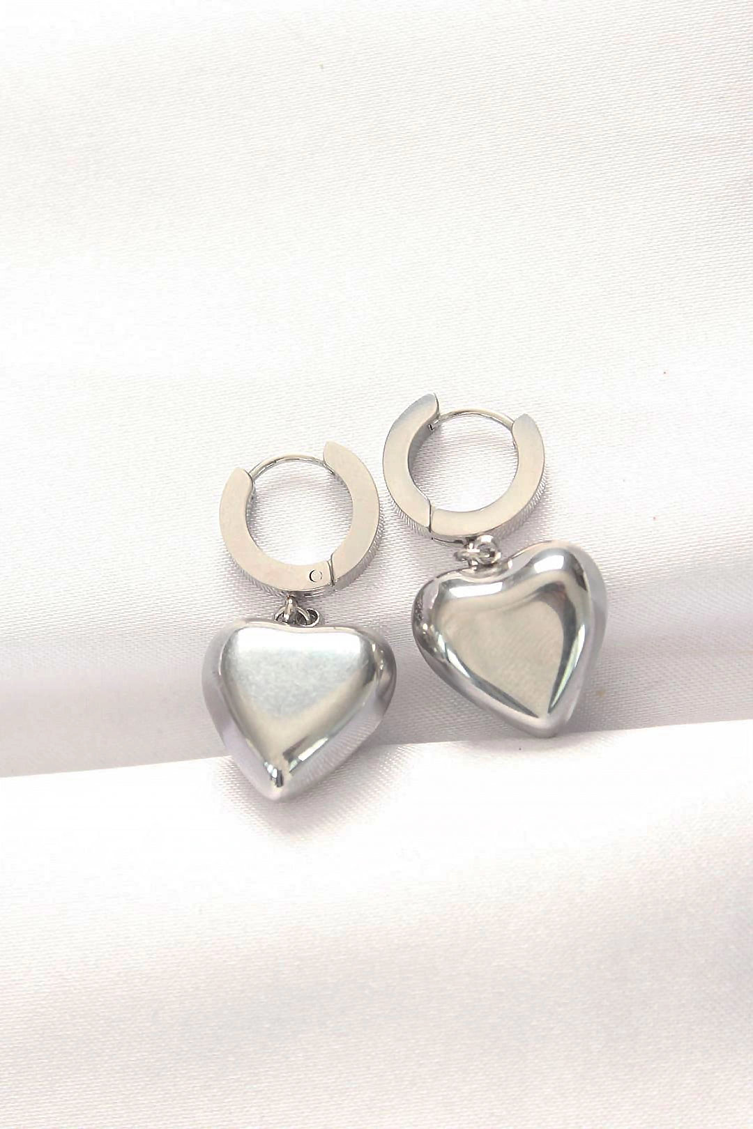 316l Çelik Gümüş Renk Bombeli Kalp Tasarımlı Küpe