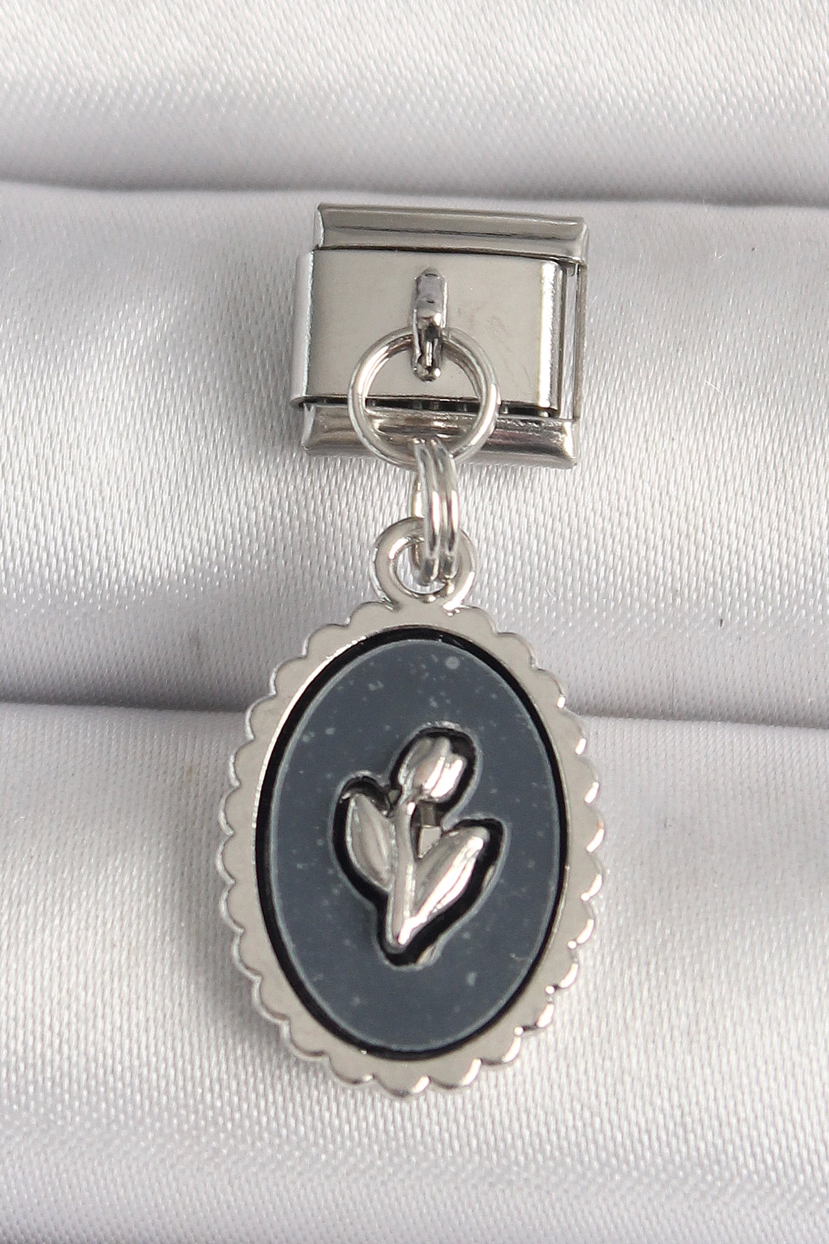 316l Çelik Gümüş Renk Çiçek İşlemeli Siyah Portre Model Nomination Charm