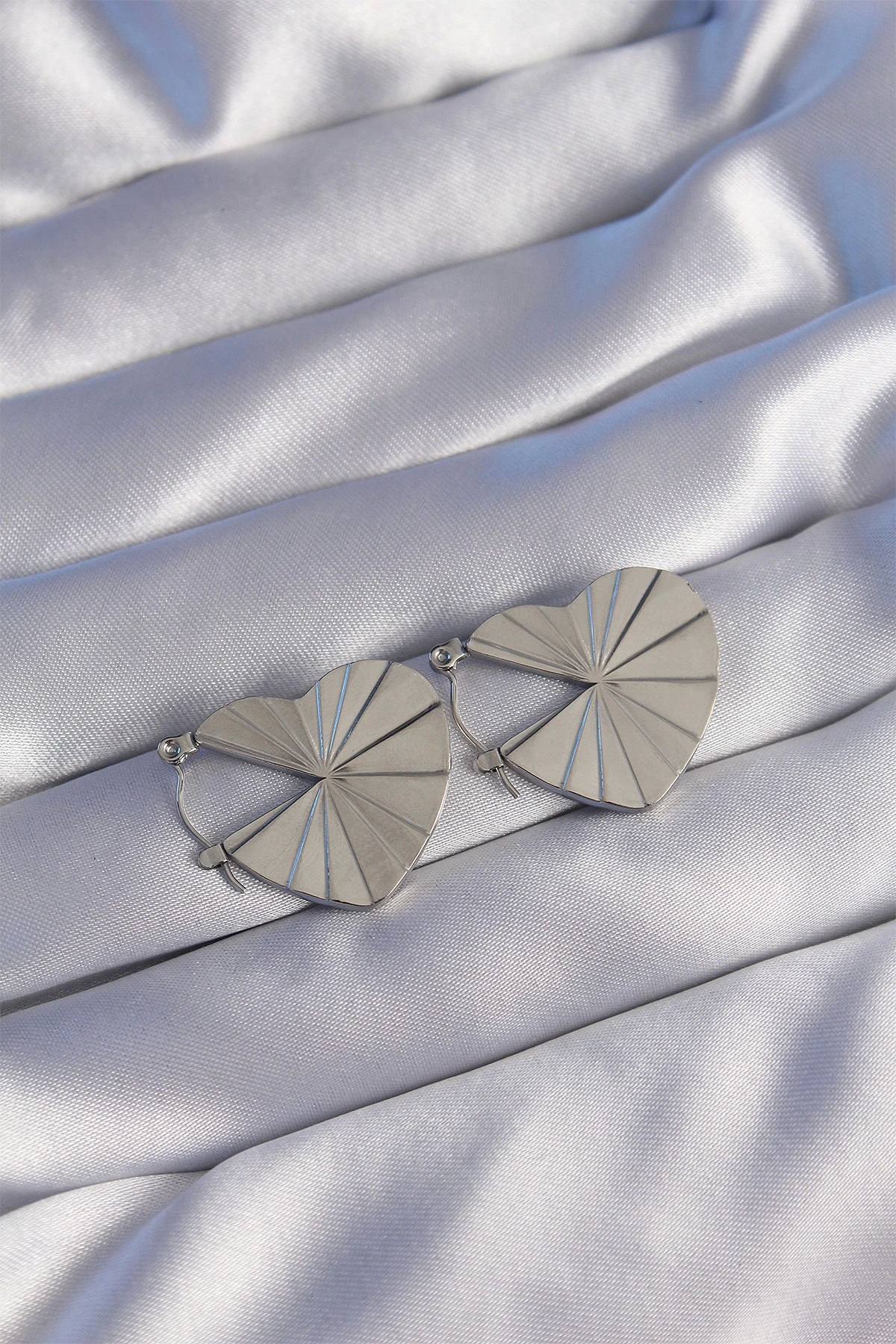 316l Çelik Gümüş Renk Çizgili Plaka Tasarımlı Kalp Küpe