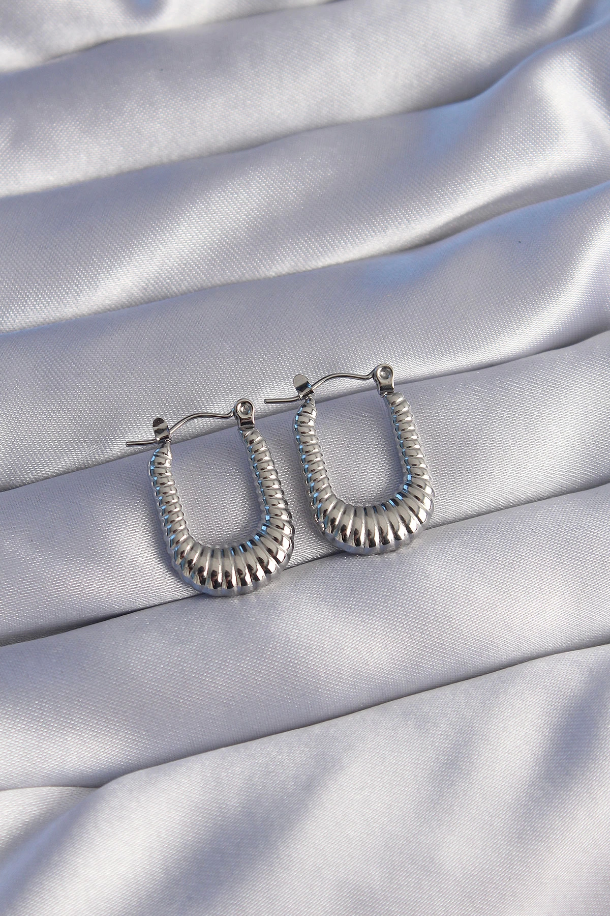 316l Çelik Gümüş Renk Dikdörtgen Tasarımlı Tırtıklı Küpe