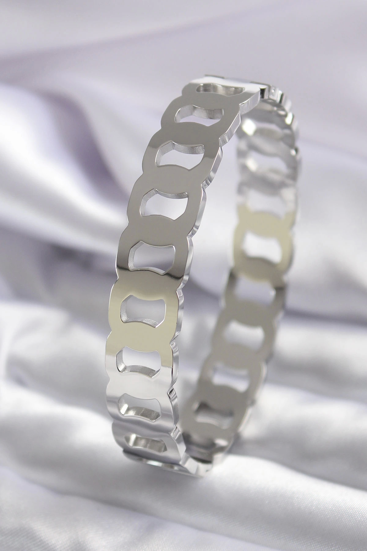 316l Çelik Gümüş Renk Geçme Halka Model Kadın Kelepçe
