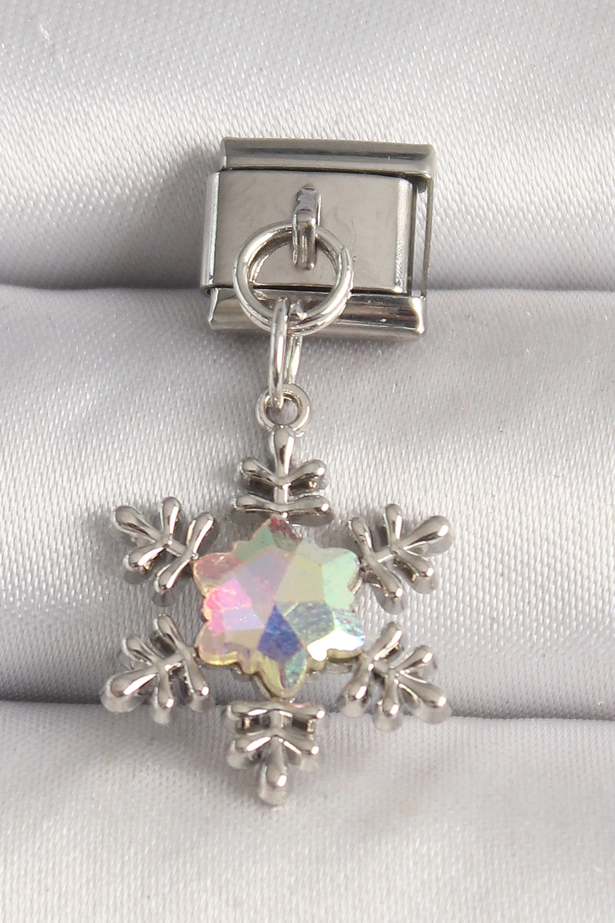 316l Çelik Gümüş Renk Hologram Mineli Kar Tanesi Model Nomination Charm