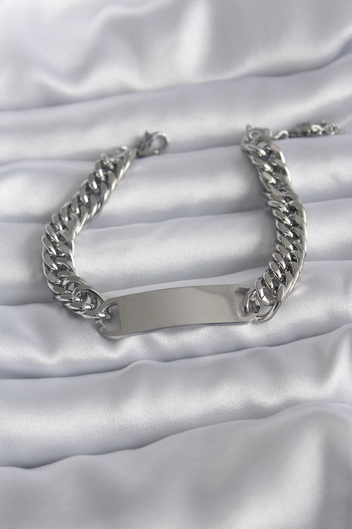 316l Çelik Gümüş Renk İsim Yazılabilir Plaka Model Kadın Bileklik