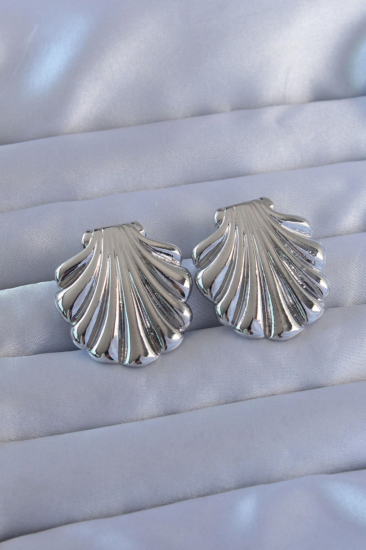 316l Çelik Gümüş Renk İstiridye Model Küpe