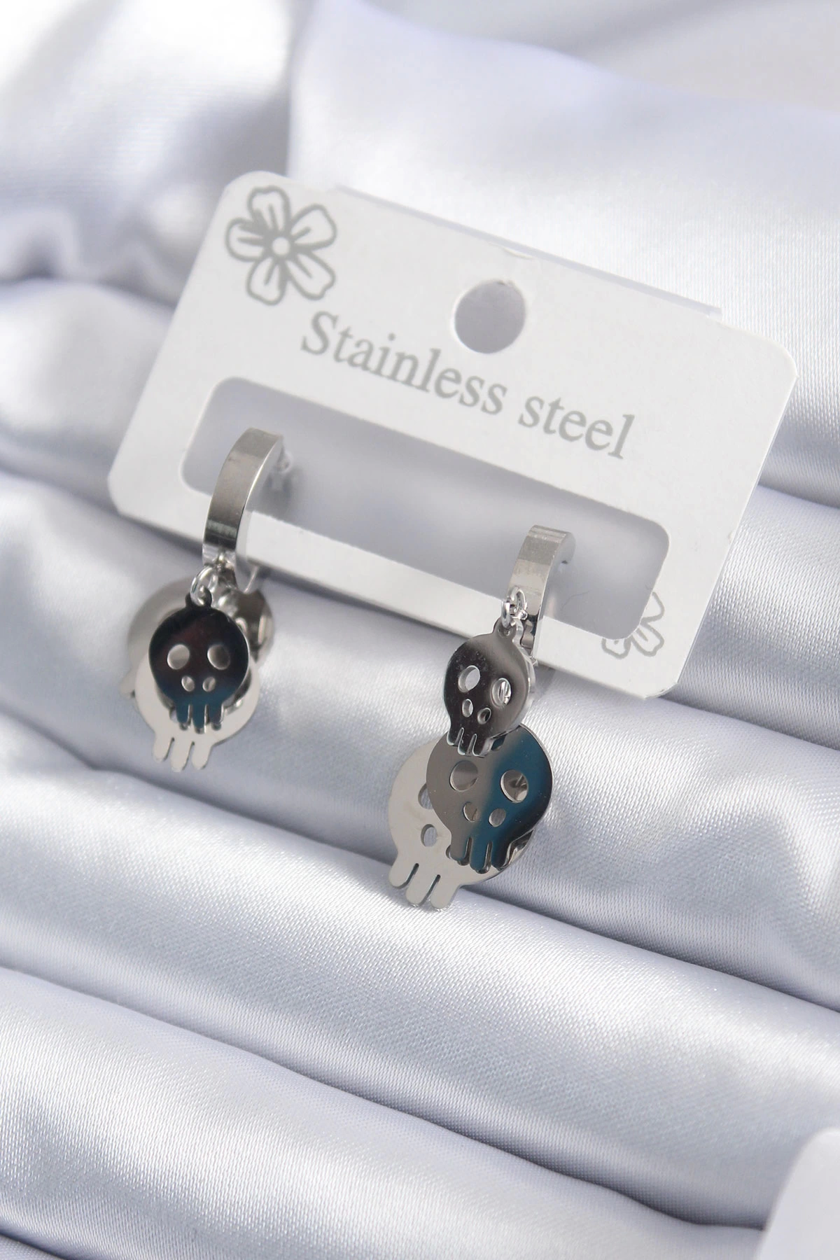 316l Çelik Gümüş Renk Sallantı Kuru Kafa Model Kadın Küpe