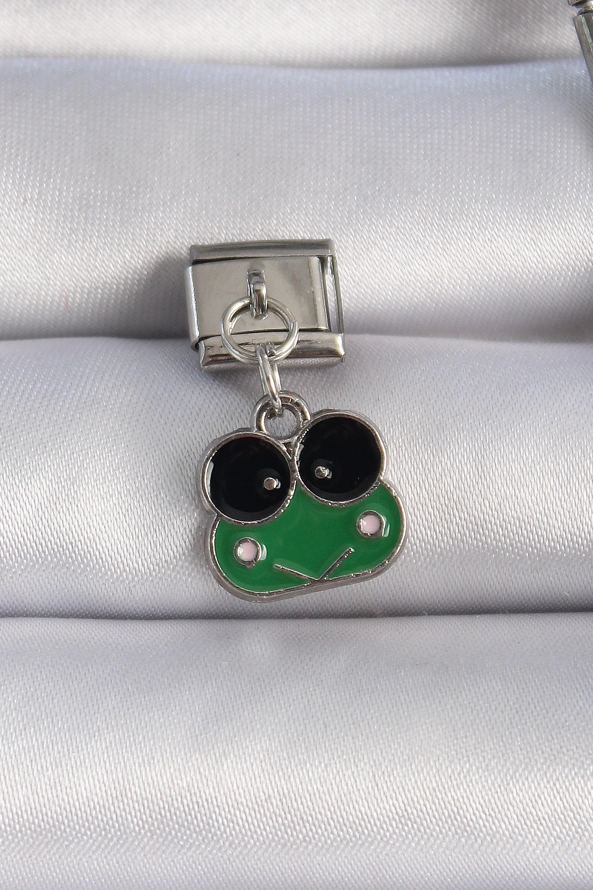 316l Çelik Gümüş Renk Sallantılı Yeşil Kurbağa Figür Nomination Charm