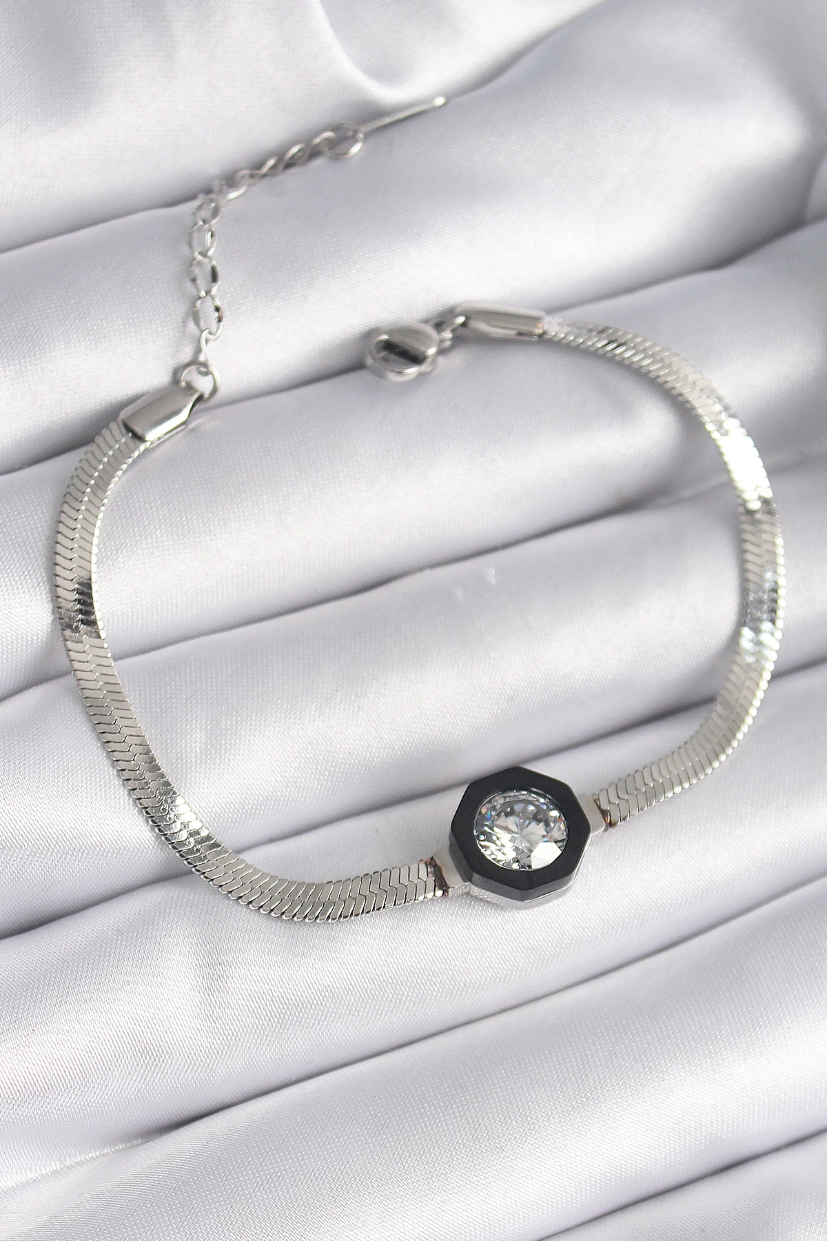 316l Çelik Gümüş Renk Zirkon Taşlı İtalyan Zincir Model Kadın Bileklik