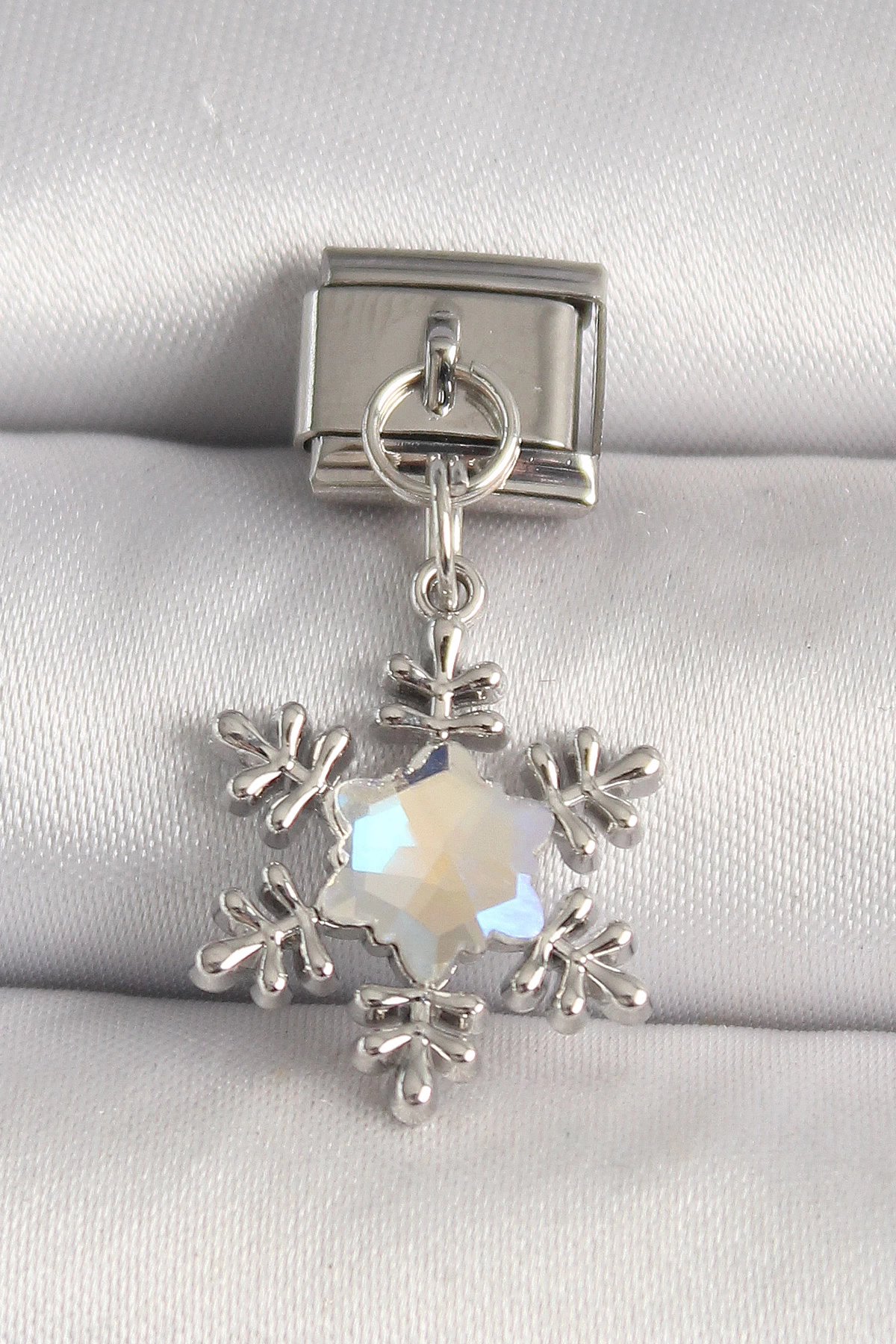 316l Çelik Gümüş Renk Zirkon Taşlı Kar Tanesi Model Nomination Charm