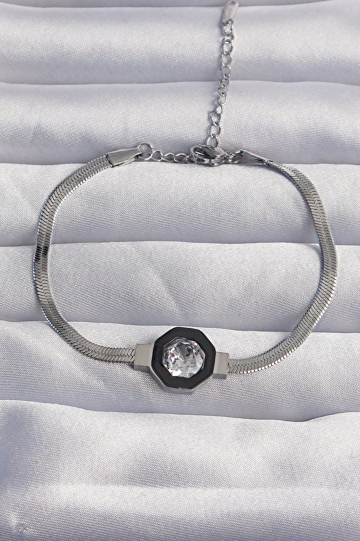 316l Çelik Gümüş Renk Zirkon Taşlı Mineli İtalyan Zincir Serenay Bileklik