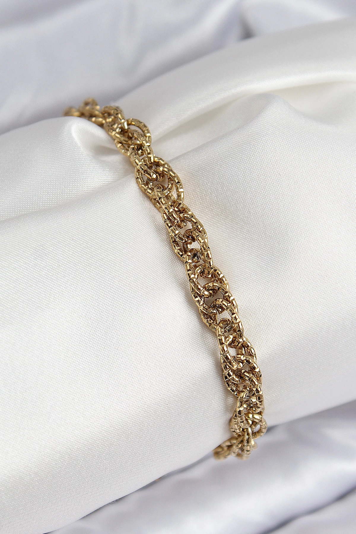 316l Çelik Klasik Dövme Halat Zincir Model Gold Renk Kadın Bileklik