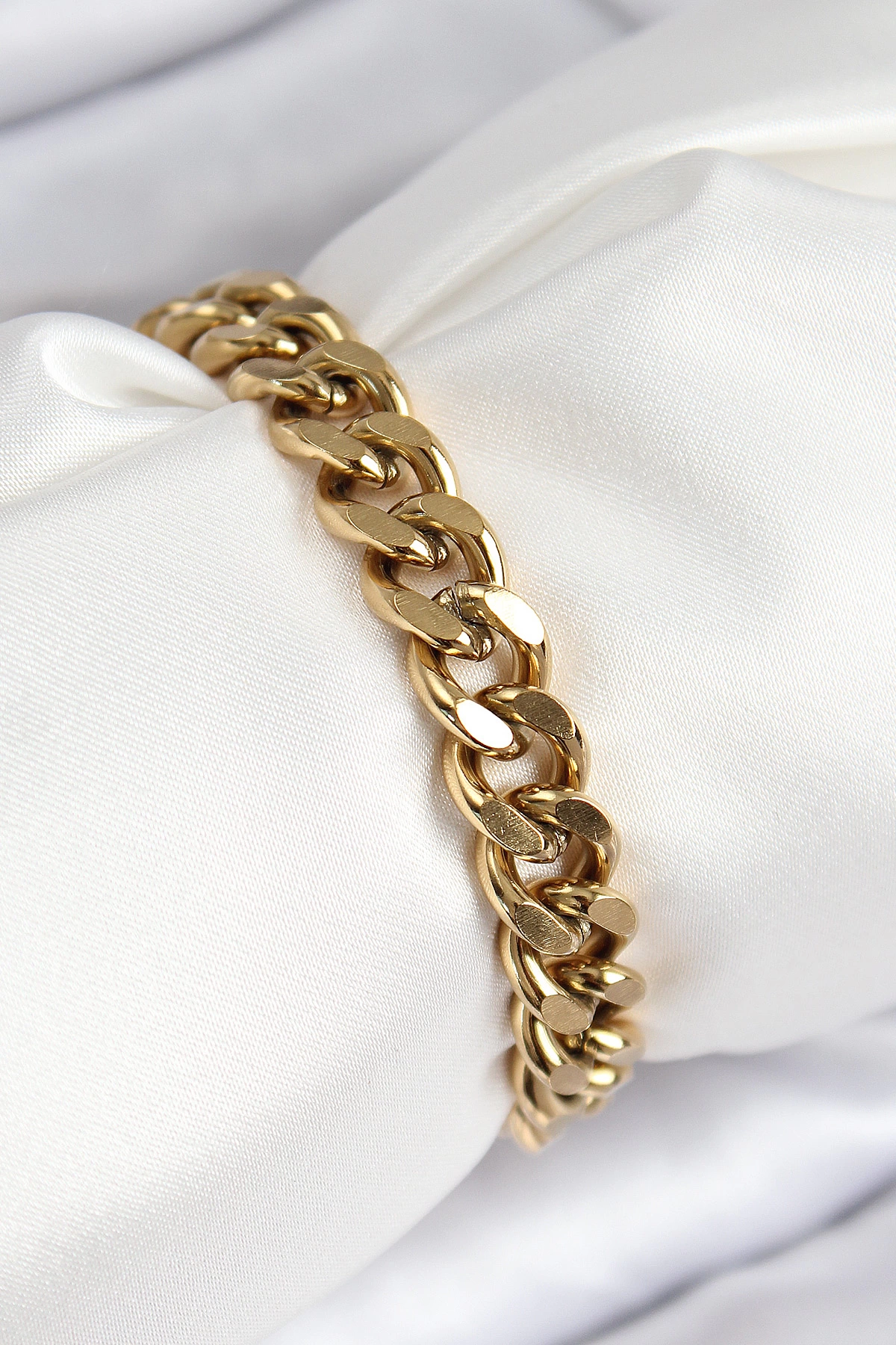 316l Çelik Klasik Kalın Zincir Model Gold Renk Kadın Bileklik