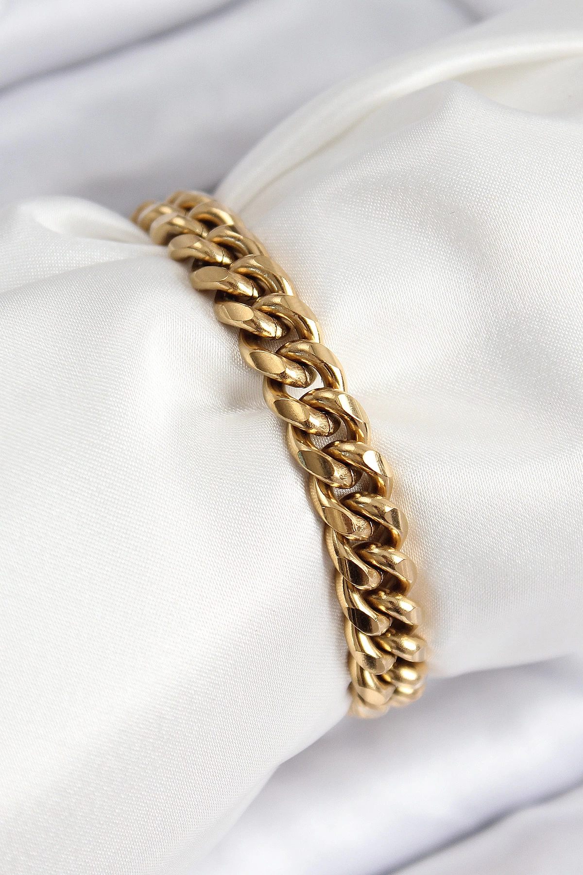 316l Çelik Klasik Kalın Zincir Model Gold Renk Kadın Bileklik