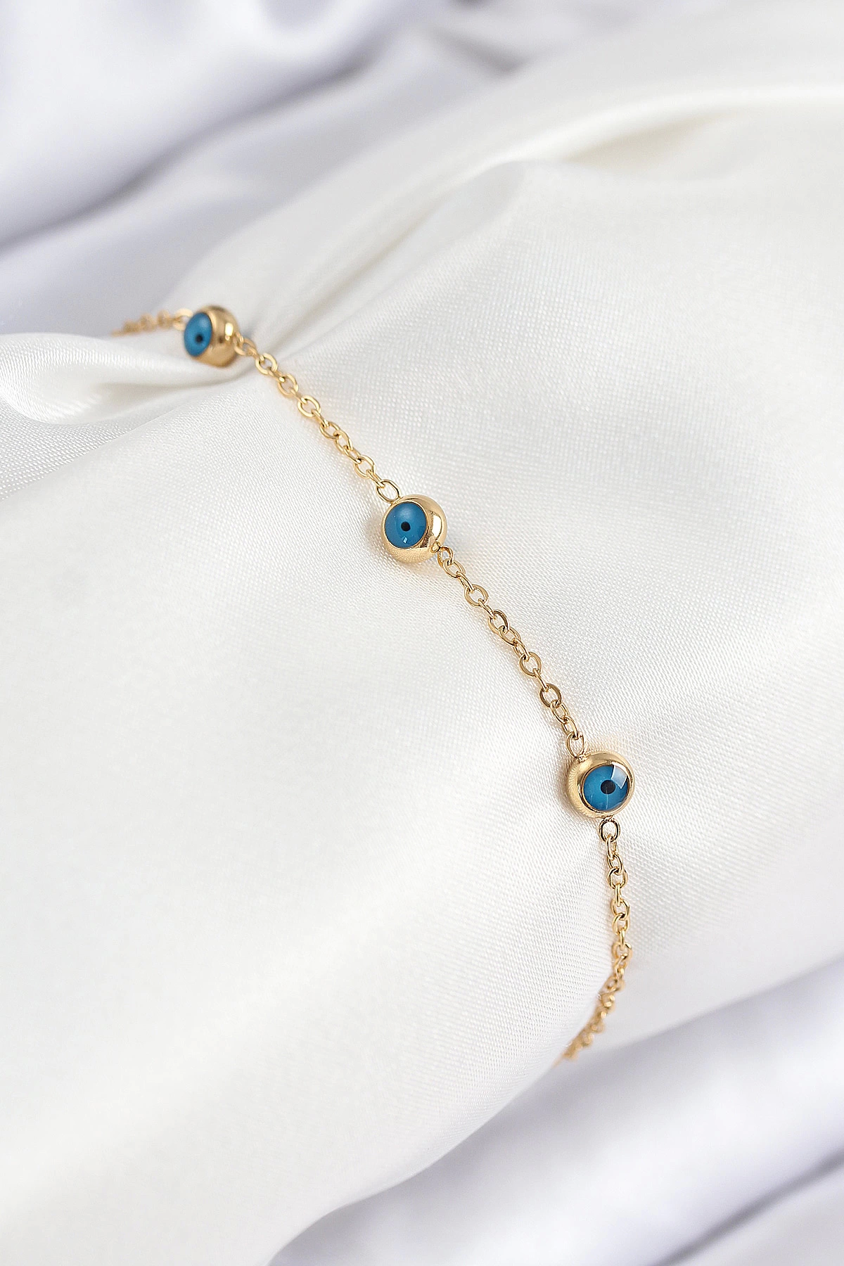 316l Çelik Nazar Boncuğu Model Gold Renk Kadın Bileklik