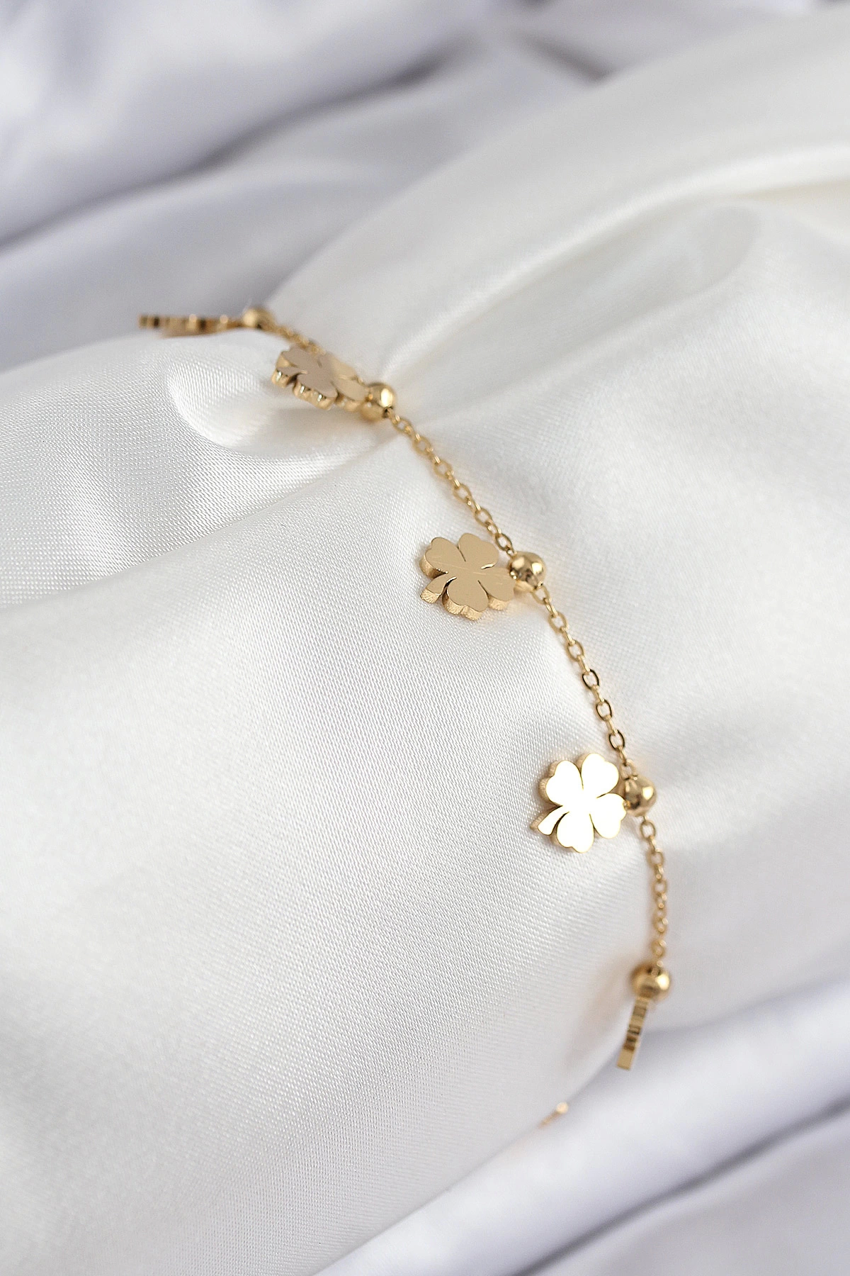 316l Çelik Sıralı Yonca Model Gold Renk Kadın Bileklik