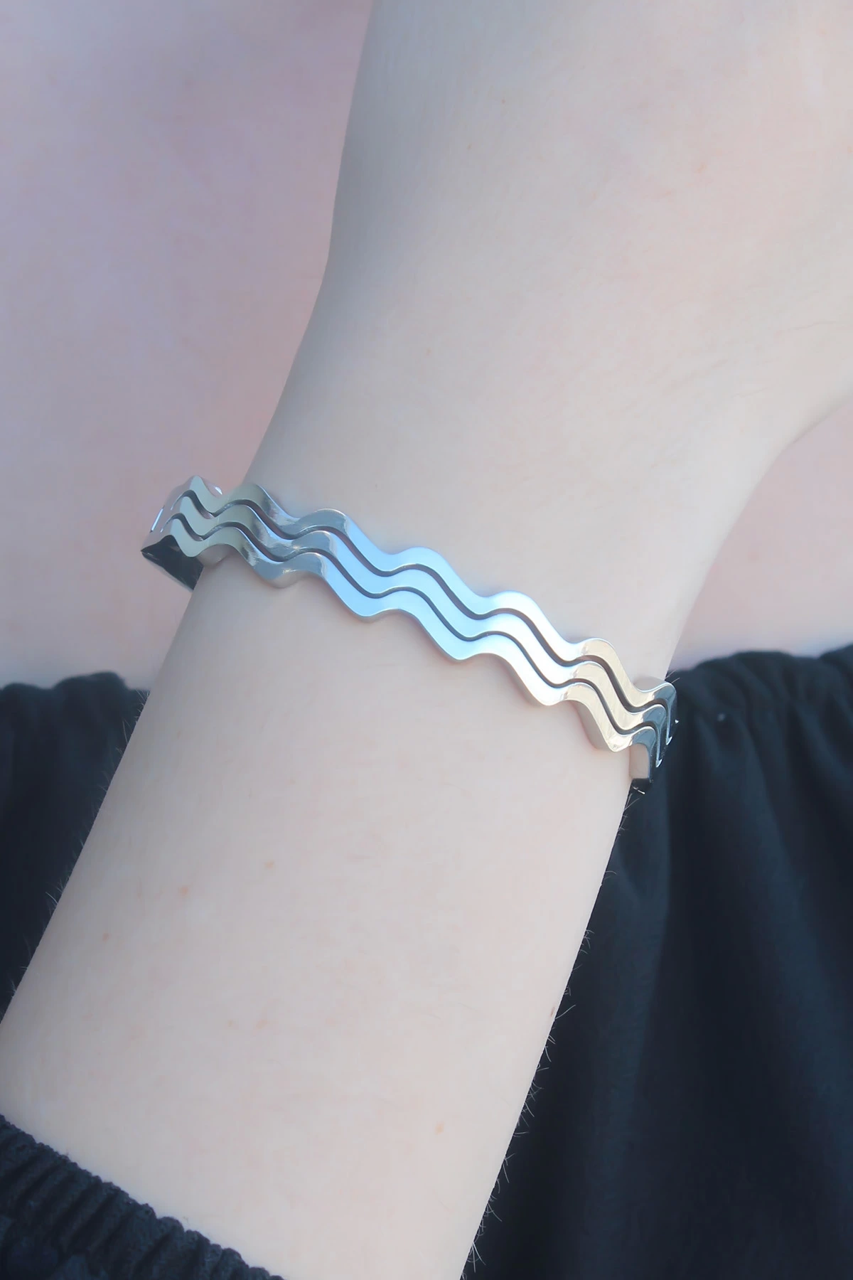 316l Kararmaz Çelik Gümüş Renk Dalga Model Kelepçe Kadın Bileklik