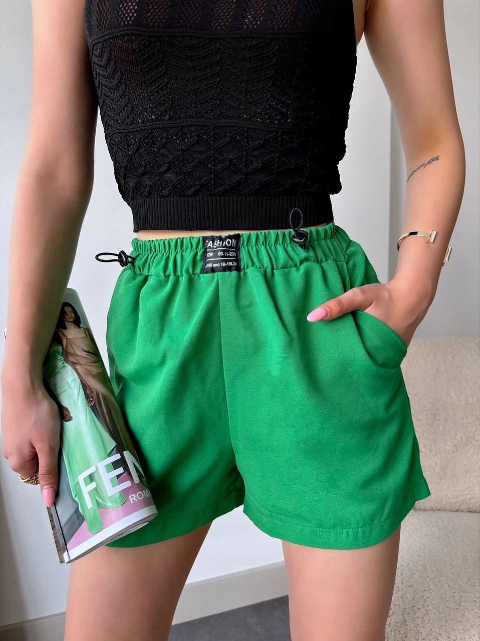 Armalı Keten Şort Yeşil S251003