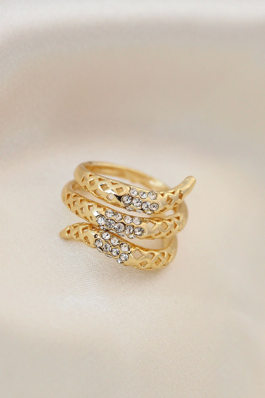 Ayarlamalı Altın Renk Metal Zirkon Taşlı Yüzük