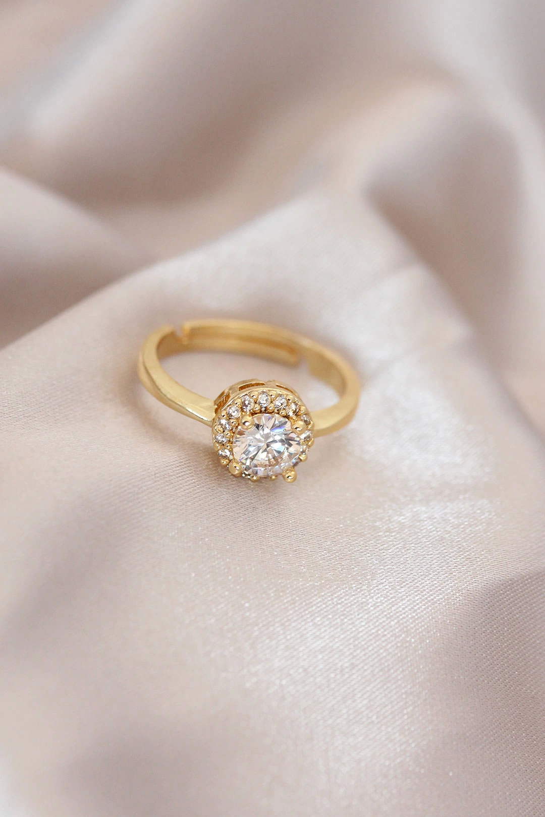 Ayarlamalı Altın Renk Metal Zirkon Ve Kristal Taşlı Oval Model Yüzük