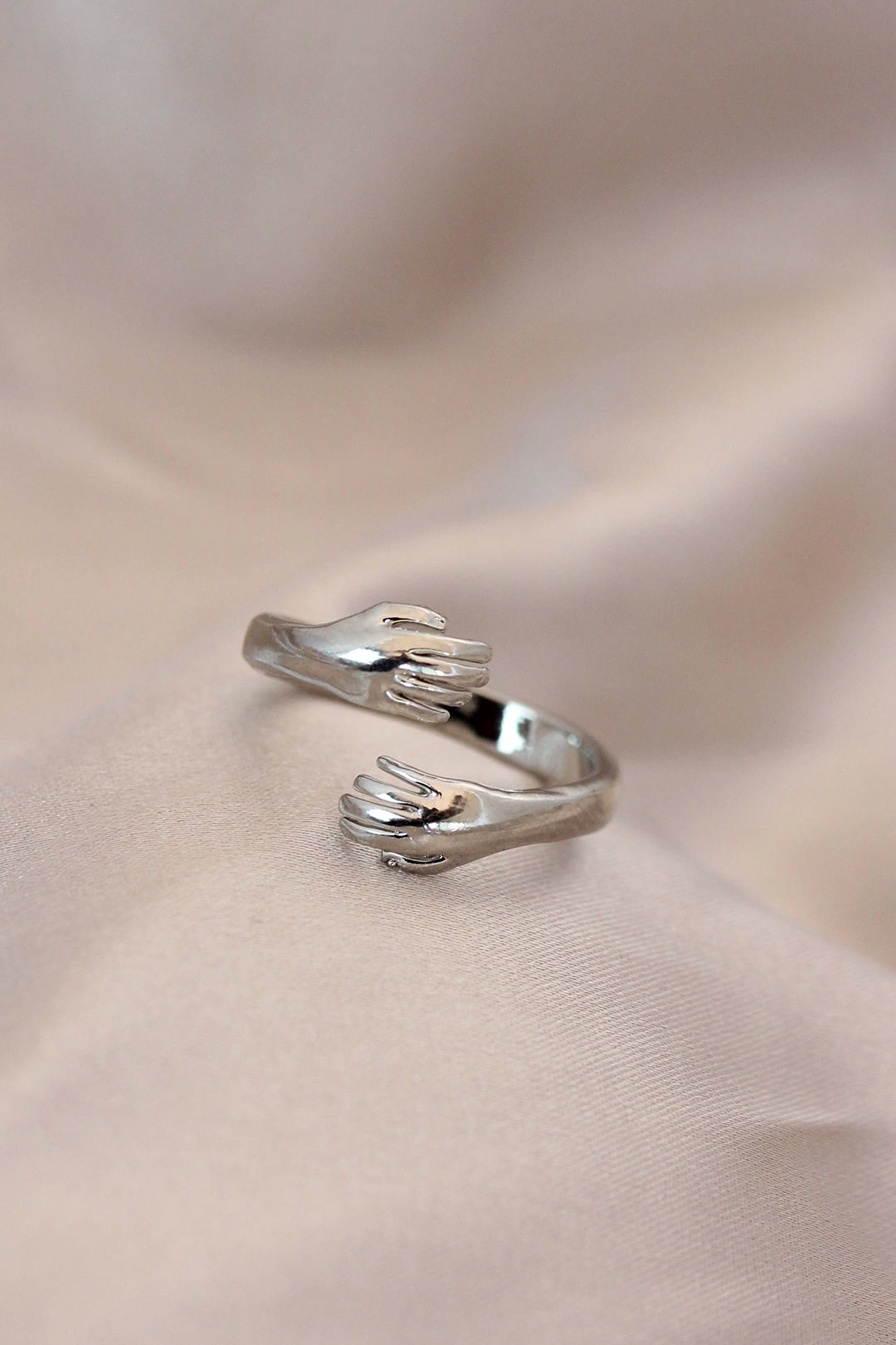 Ayarlamalı Gümüş Renk Metal Sarılan Eller Model Yüzük