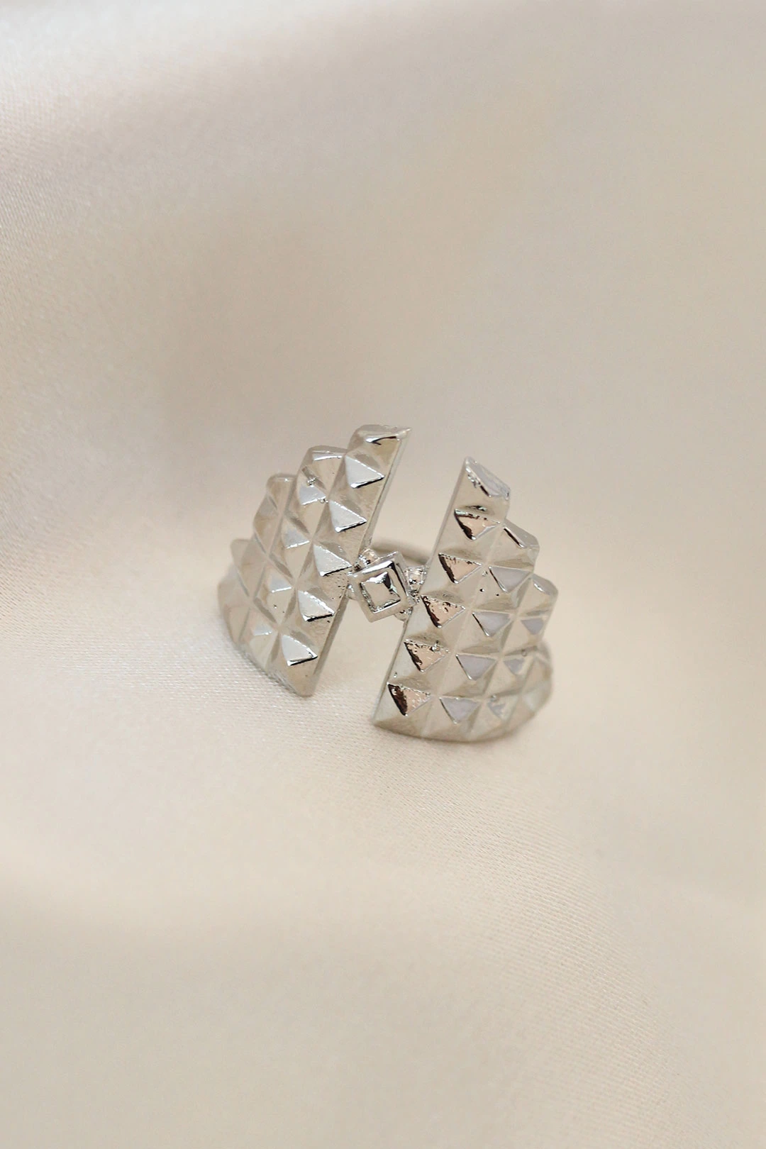 Ayarlamalı Gümüş Renk Metal Zirkon Taşlı Piramit Yüzük