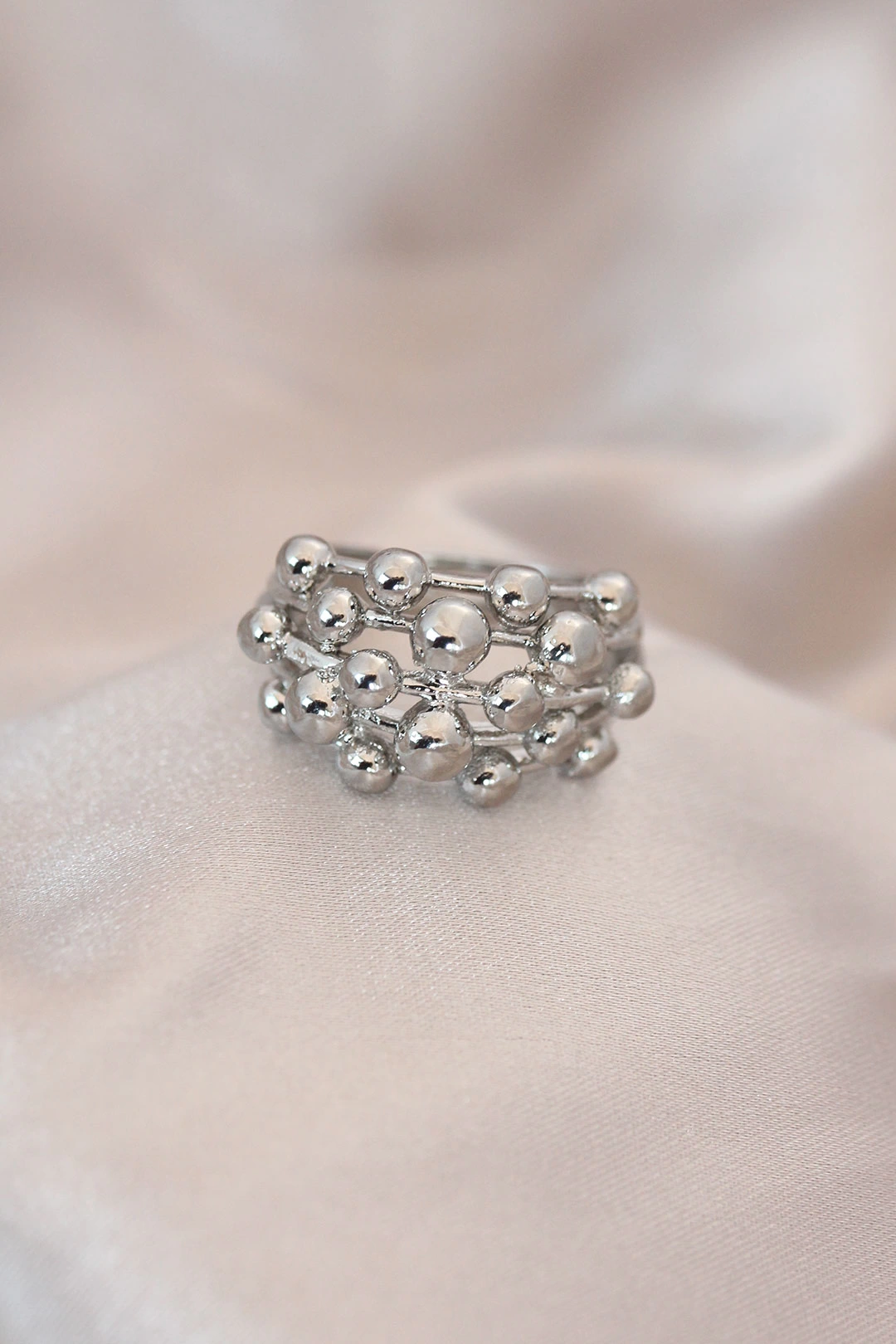 Ayarlamalı Silver Renk Metal Bombeli Boluncuk Model Yüzük