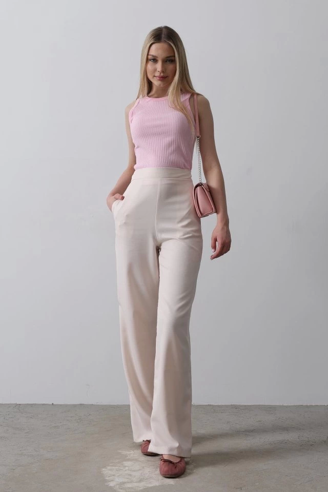 Beli Yarım Lastikli Palazzo Pantolon - Pudra