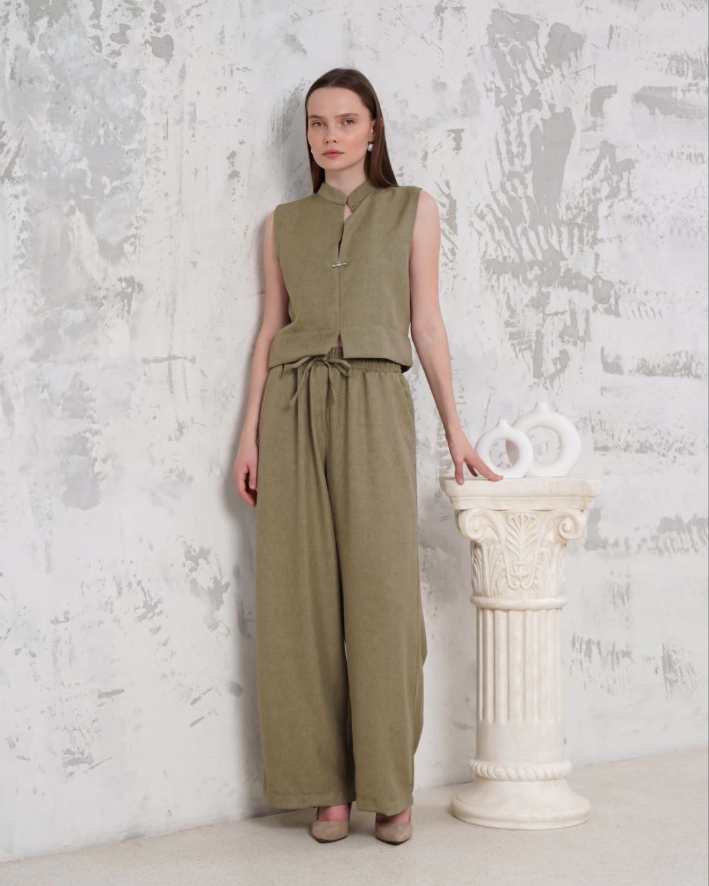 Broşlu Yelek Pantolon Takım Haki S255821