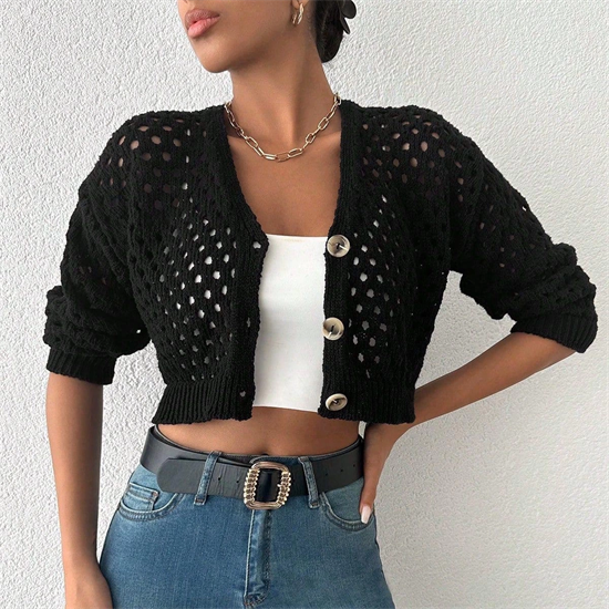 Büyük Düğmeli Delikli Hırka Siyah