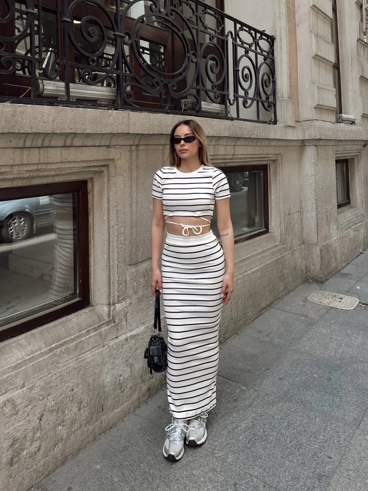 Çizgili Etekli Takım Beyaz S3609