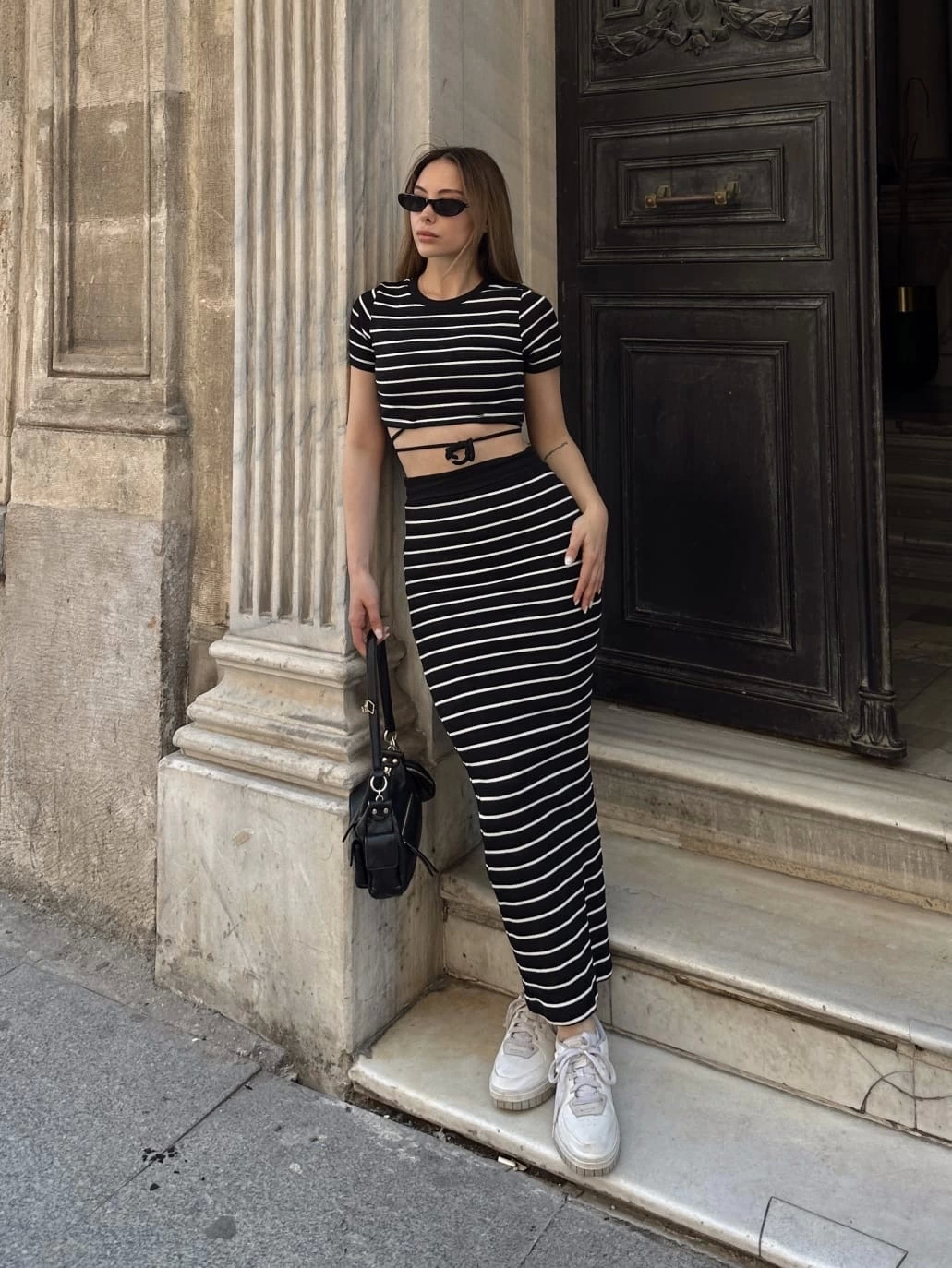 Çizgili Etekli Takım Siyah S3609