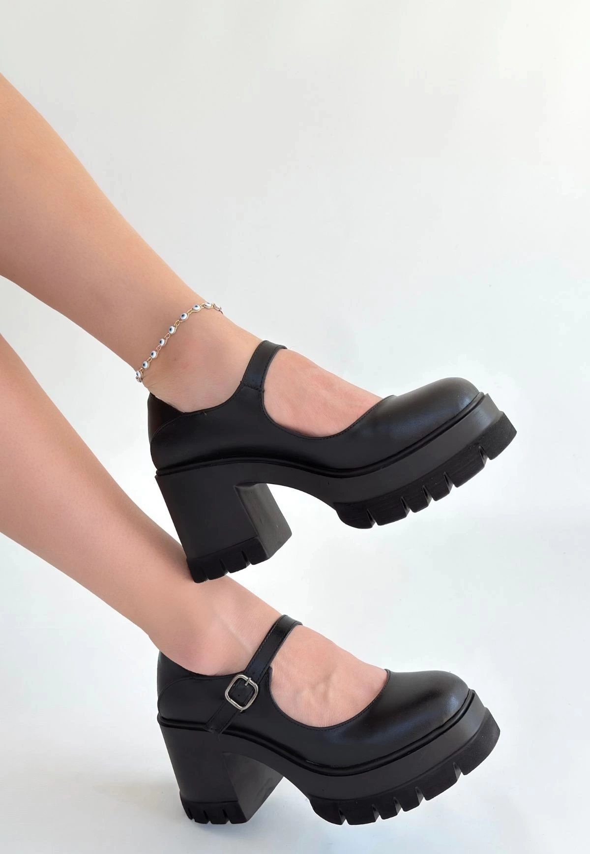 Dlor Siyah Cilt Dolgu Topuk Ayakkabı