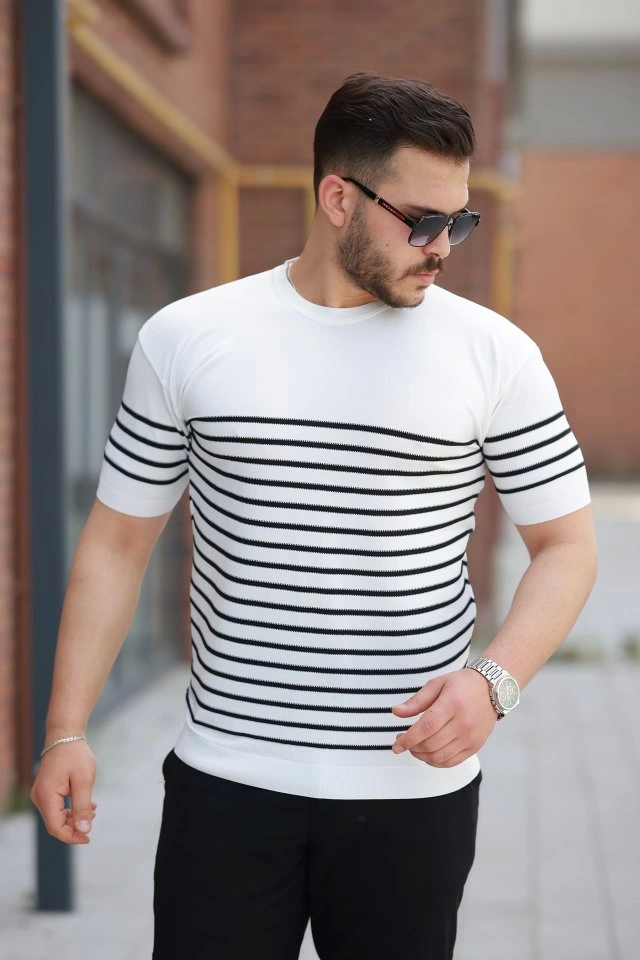 Erkek Çizgi Desenli Bisiklet Yaka Kısa Kollu T-sihrt