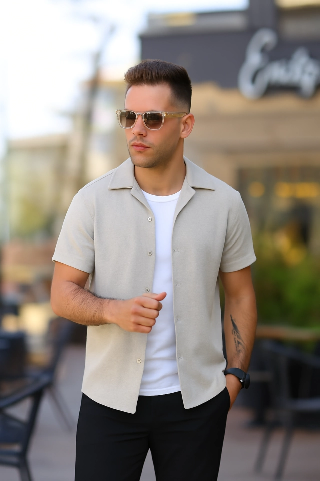 Erkek Kısa Kollu Örme Kumaş Pamuklu Gömlek