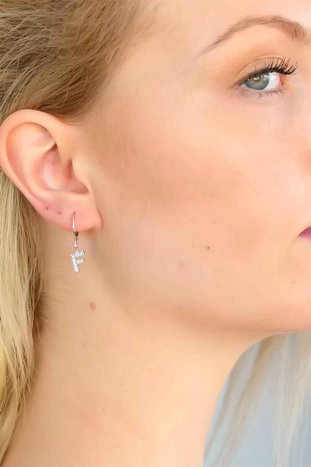 Silver Renk Zirkon Taşlı F Harf Bayan Küpe