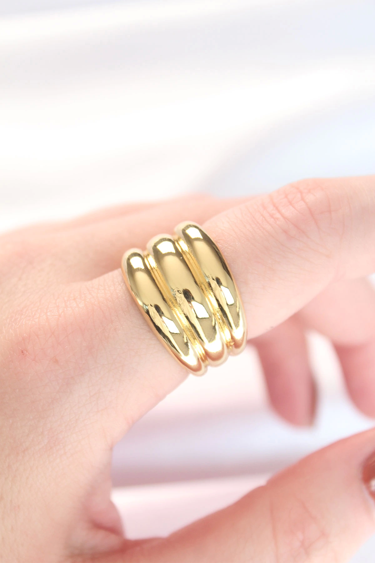 Gold Renk Ayarlanabilir Çizgili Bombe Yüzük
