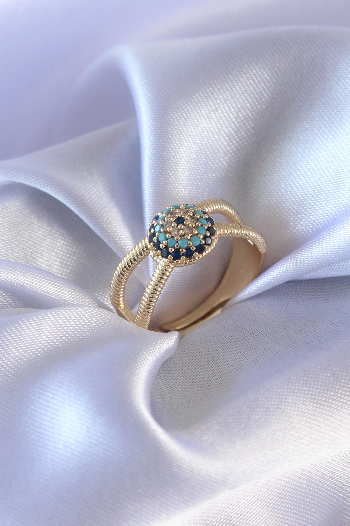 Gold Renk Nazar Boncuk Model Kadın Yüzük