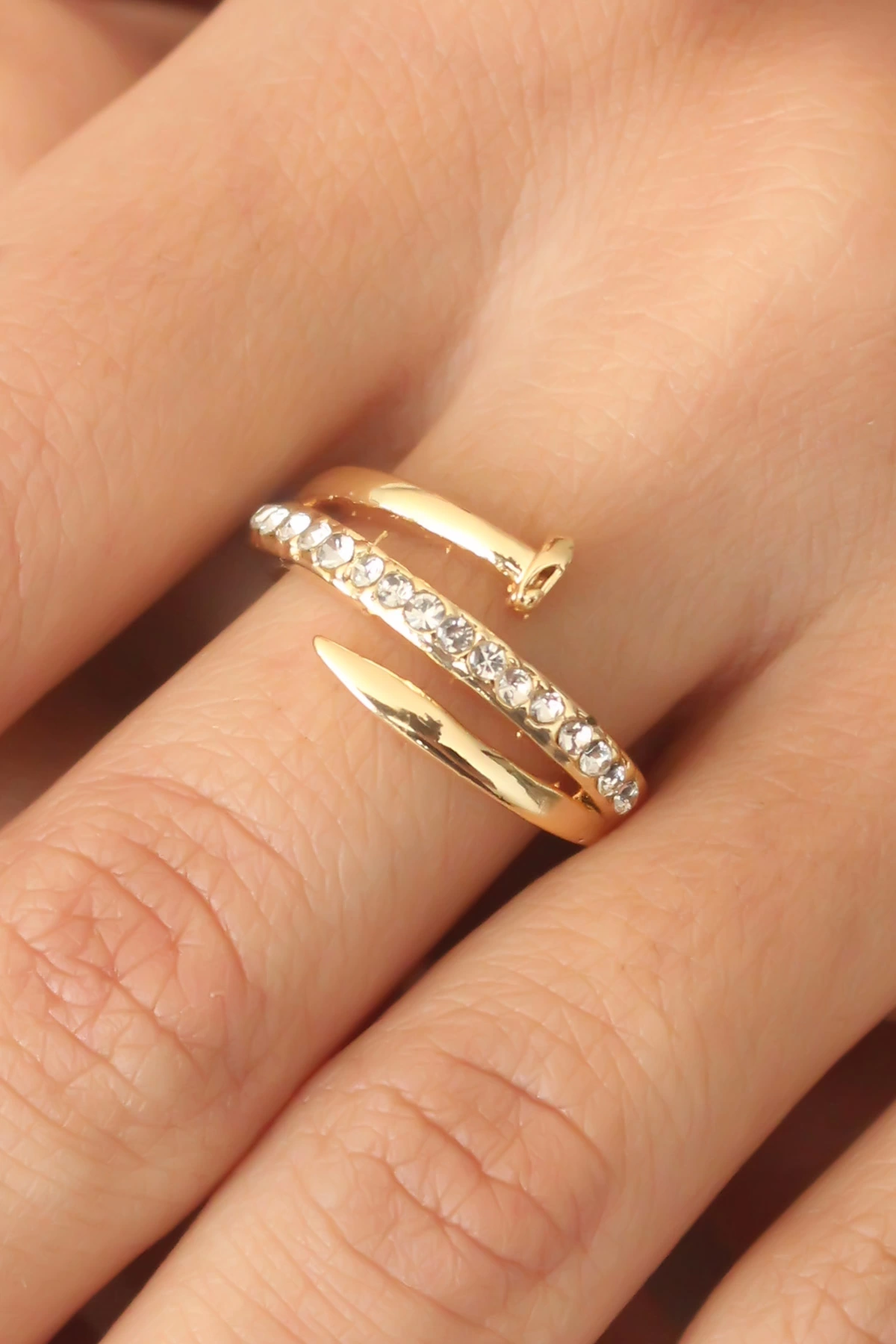 Gold Renk Taşlı Çivi Ayarlanabilir Kadın Yüzük