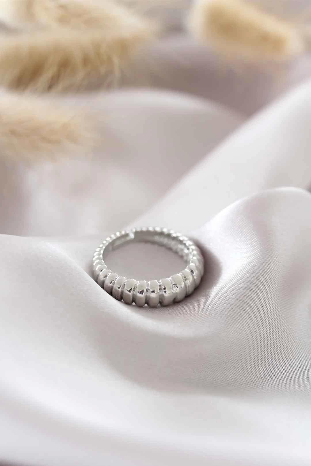 Gümüş Renk Ayarlamalı Burgu Kadın Yüzük
