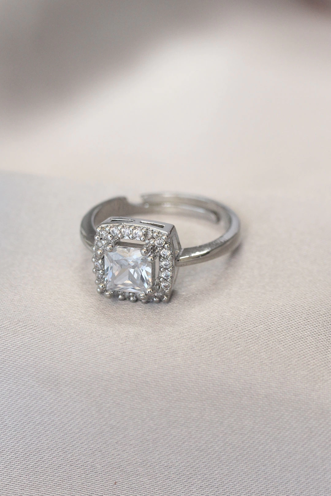 Gümüş Renk Baget Ve Zirkon Taşlı Kare Yüzük
