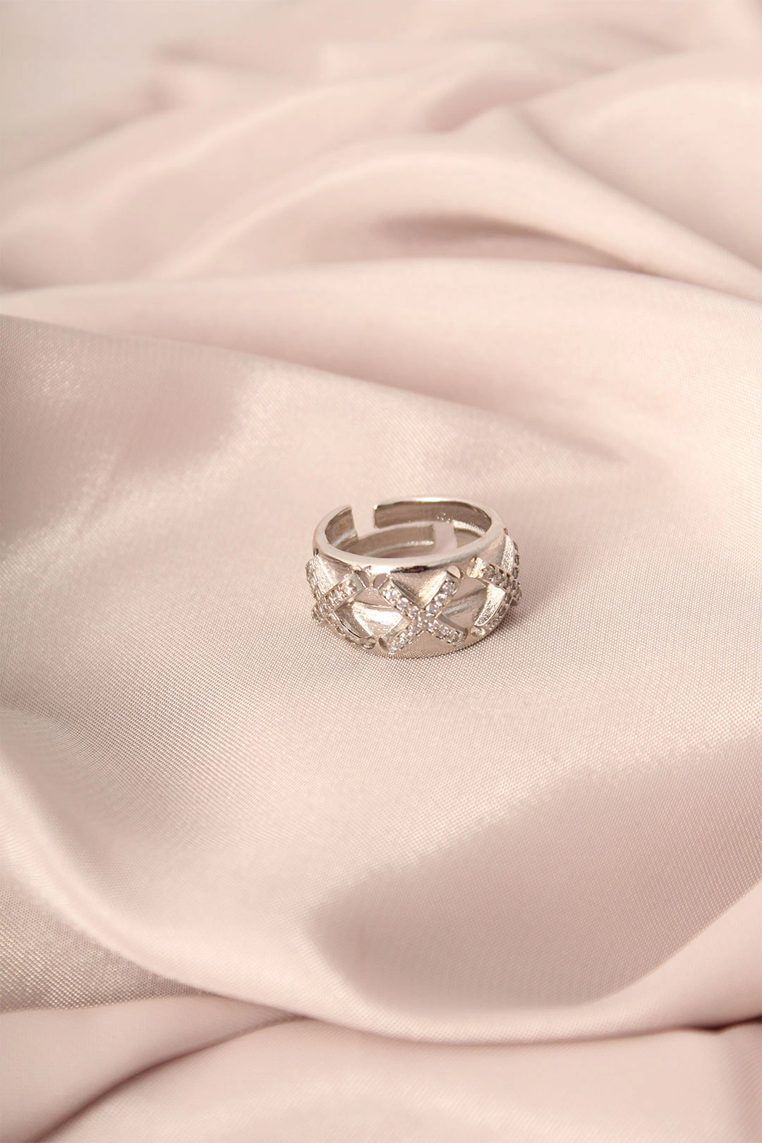 Gümüş Renk Metal Zirkon Taşlı Çarpı Model Ayarlanabilir Kadın Yüzük