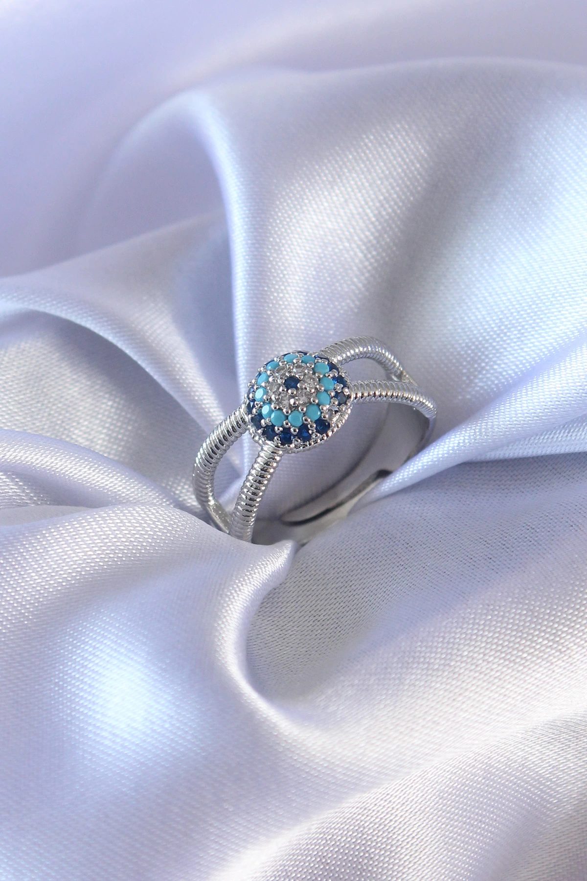 Gümüş Renk Nazar Boncuk Model Kadın Yüzük