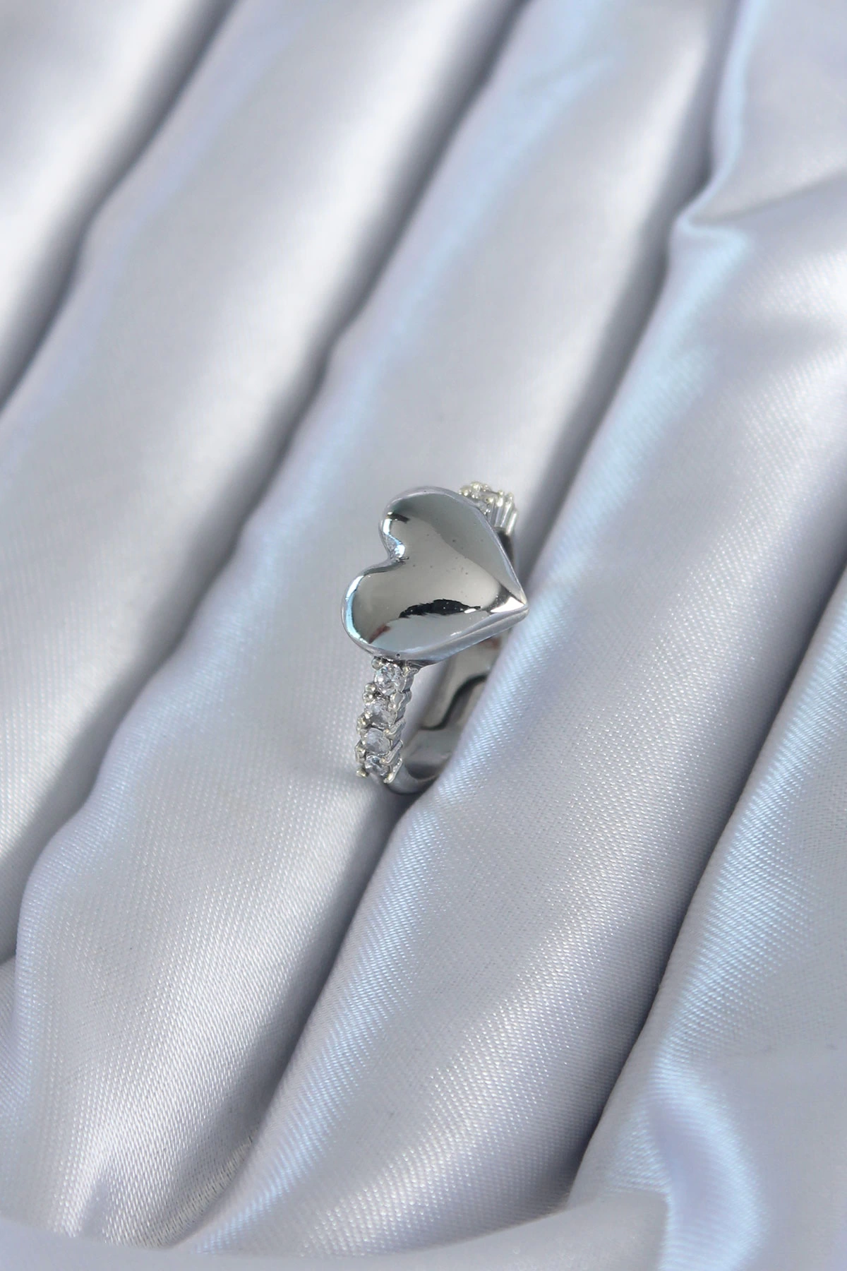 Gümüş Renk Pirinç Zirkon Taşlı Kalp Model Kadın Yüzük