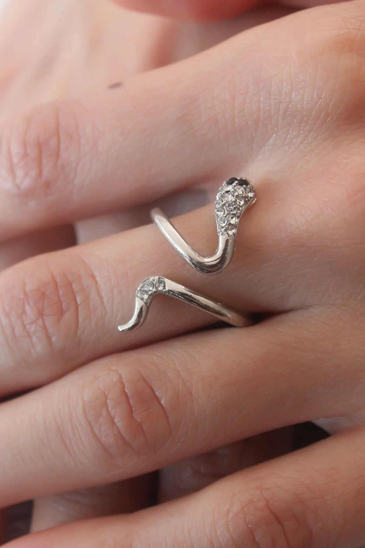 Gümüş Renk Yılan Figür Zirkon Taş Detay Kadın Yüzük