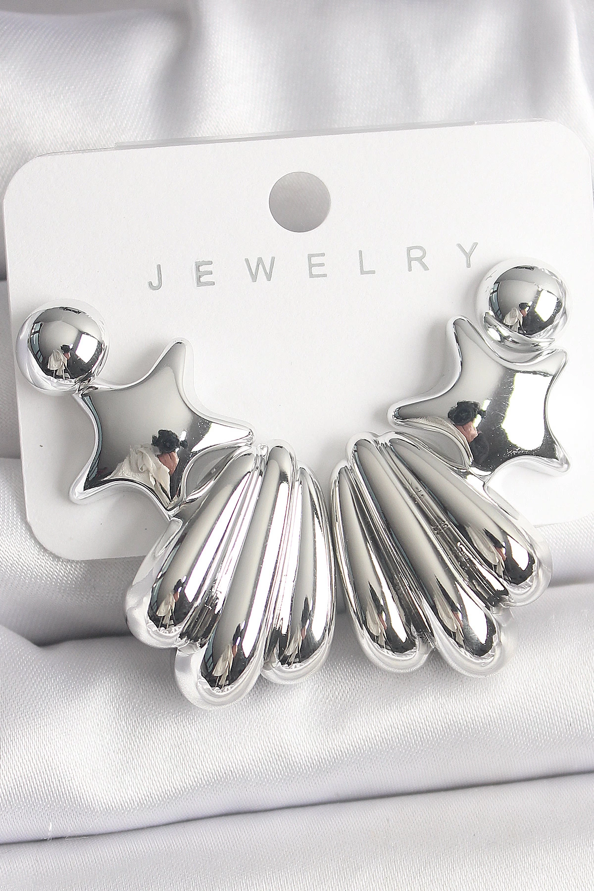 Gümüş Renk Yıldız Deniz Kabuğu Model Ccb Plastik Kadın Küpe Seti